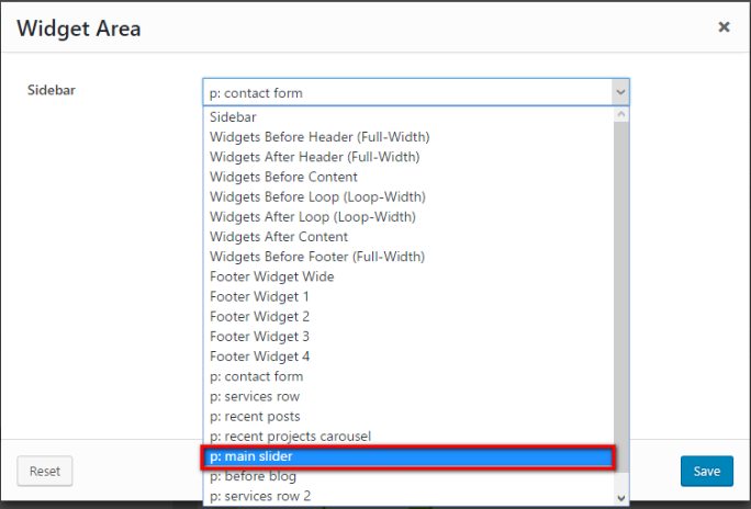 Besides you can select any slider form the Widgets Area list in Unyson Drag & Drop Page Builder for any of your page: