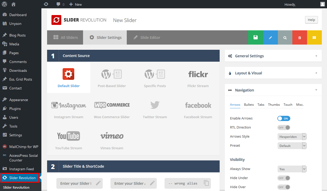 Slider Revolution is an innovative, responsive WordPress Slider Plugin that displays your content the beautiful way. Whether it's a Slider, Carousel, Hero Scene or even a whole Front Page, the visual, drag & drop editor will let you tell your own stories in no time!