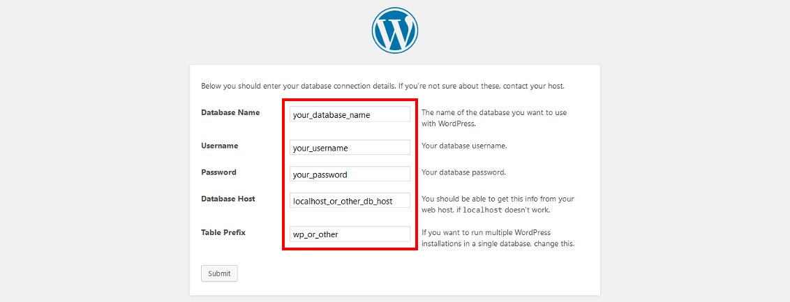 9. Fill the required information for database. As you remember, we have prepared database and username via PhPMyAdmin in the previous steps: