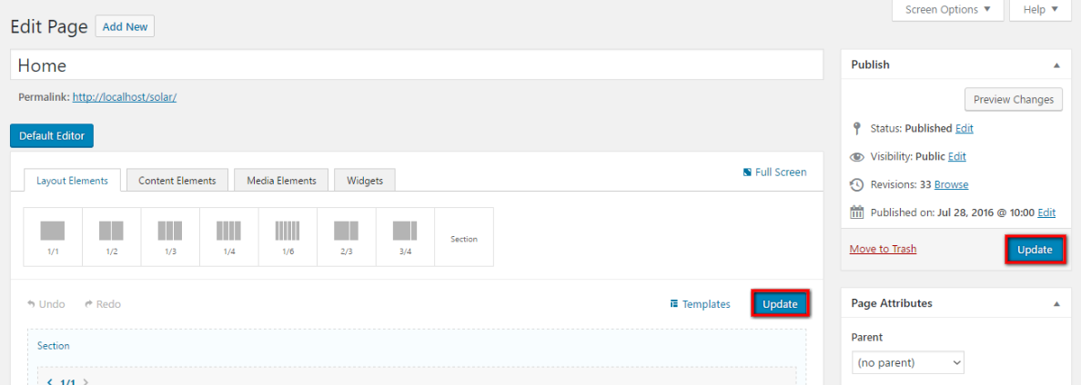 After selecting all the necessary options for Portfolio you may update it and then choose it via Unyson Drag & Drop Page Builder for any page as Widget: