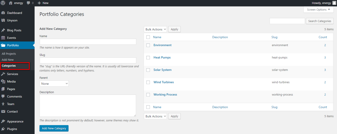 Besides you can find heaps of options for additional customization if you click Portfolio => Categories: